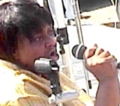 Johnnie Mae Dunson signing and rousing the crowd(19K)